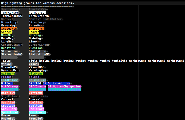 There are many more lines in the full output, but it should be clear that this is very useful when debugging colorschemes.